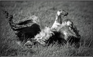 Tror ju inte att nån av hundarna direkt mår dåligt av träningsvila. Sheger borde egentligen få ledigt resten av veckan. Han har gått stadigt flera pass om dagen under en längre tid nu. Är bara såååå rädd för att vi ska tappa det lilla fria följ vi för stunden har...